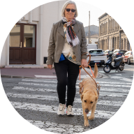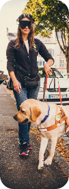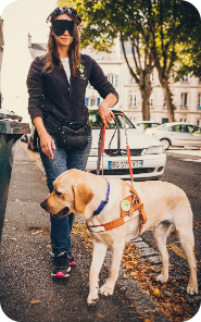 « Avec Sulky, mon fidèle compagnon, nous nous rendons chaque jour au travail en bus. Il m’aide à éviter les obstacles, à traverser les passages piétons en toute sécurité et à prendre l’ascenseur pour rejoindre mon bureau. Sulky a changé ma vie ! Je suis plus épanouie et heureuse. »